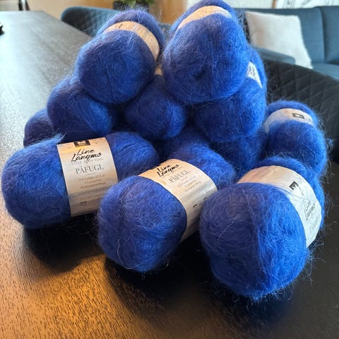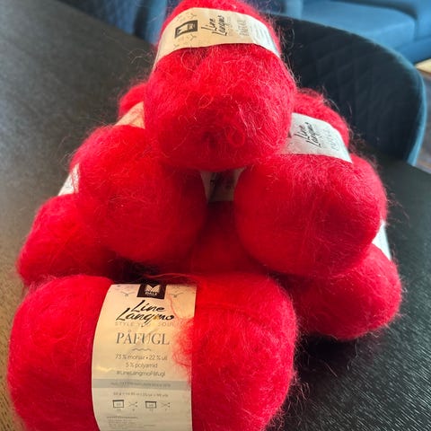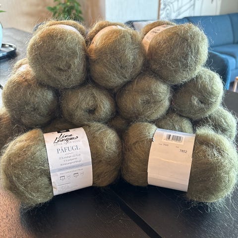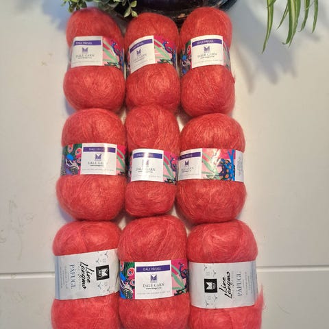Hver nøste består av en mohairblanding, 73% mohair, 22% ull, 5% polyamid.
