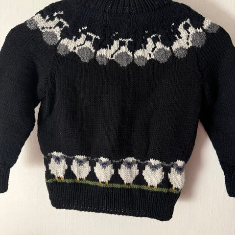 Nesten ubrukt. Hjemmestrikket.