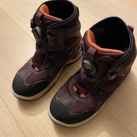 ECCO barn vintersko med Gore-Tex membran. Skoene er unisex og i størrelse 34. De har borrelåslukking for enkel tilpasning og er laget for å gi beskyttelse mot vær og vind.
