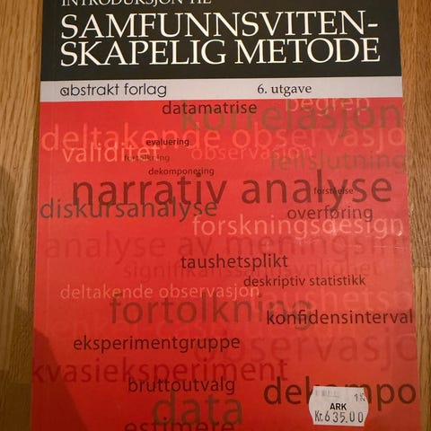 Introduksjon til Samfunnsvitenskapelig metode lærebok, relevant for samfunnsfaglige studenter (spesielt statsvitenskap, økonomi og vscom retningen). Boken dekker ulike metoder og tilnærminger innen samfunnsvitenskapelig forskning, inkludert narrativ analyse, observasjon, eksperimentgrupper og tolkning. Egnet for studenter og fagpersoner som ønsker å forstå og anvende forskningsmetoder i samfunnsfag.