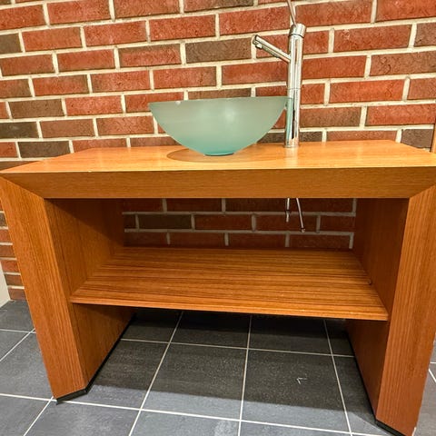 Vasken er sentrert på benkeplaten, men benkeplate kan kappes etter behov.