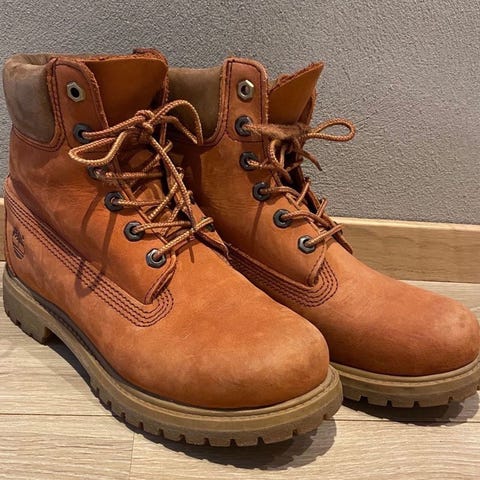 Godt brukt, men mye sko igjen (må kjøre en ny rund med impregneringsspray og skinnvoks)
