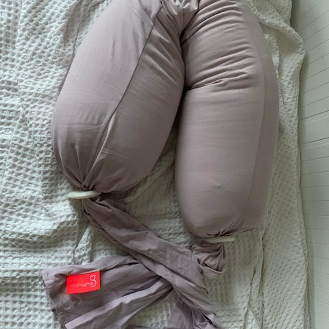 Gravid/ ammepute fra Bb Hug me jeg ikke kunne vært foruten. Som gravid gir den veldig god støtte til søvn og hvile. Til amming kan den legges under barnet og gi god støtte for mor. Selges videre ren og pen, i grått tekstil 🩶