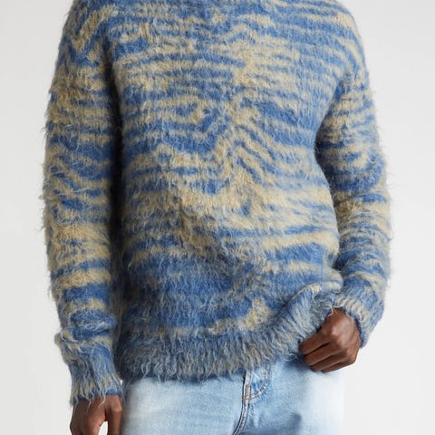NN07 genser i størrelse M, laget av mohairull, alpacka. Genseren har en grå farge og er designet for menn.