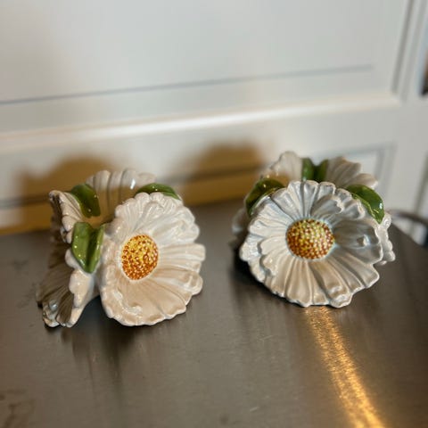Pene lysestaker formet som blomster, håndlaget porselen fra Italia, Capodimonte. Veldig elegante og pene. Selges samlet:)