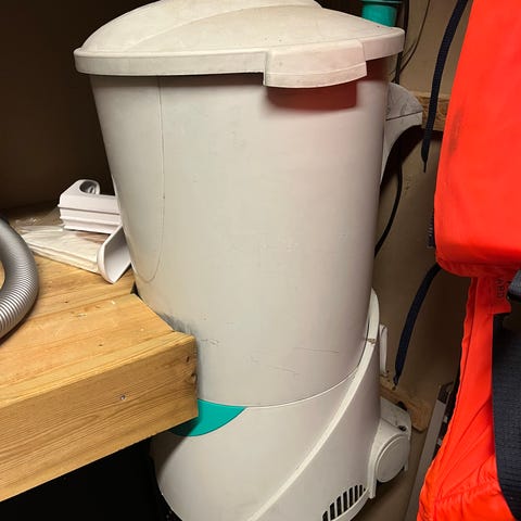 Ikke blitt brukt på en del år, men testet før vi tok det ned og alt funket som det skal. Slangen er ca 9m lang