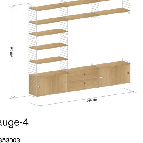 Stringhylle, 2 stk hvite gavler med 3 stk plater i Eik.