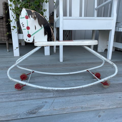 2 stk medfølgende stativ. Det ene stativet har fått seg en bulk som gjør at det ikke passer like bra lenger. Metallet og hornene har noe bruksmerker, se bilder.