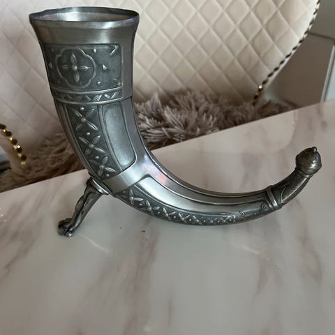Mulig drikkehorn eller krutthorn/pulverhorn og er trolig av europeisk opprinnelse.