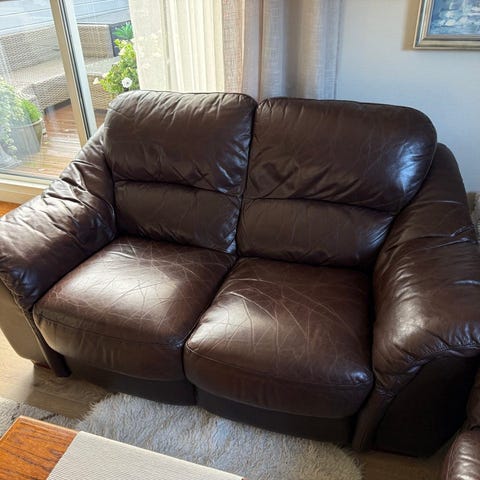 Hvit skinnsofa 3 seter og 2 seter gis bort ved henting