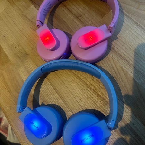 Selger 2 stk JBL hodetelefoner i fargene blå og rød. Designet for bruk av barn eller unge, med justerbar størrelse og myke øreputer for komfort. Trådløs Bluetooth tilkobling med enkel kontroll for volum og avspilling. Kan selges separat 150,- pr stk eller samlet 300,-
