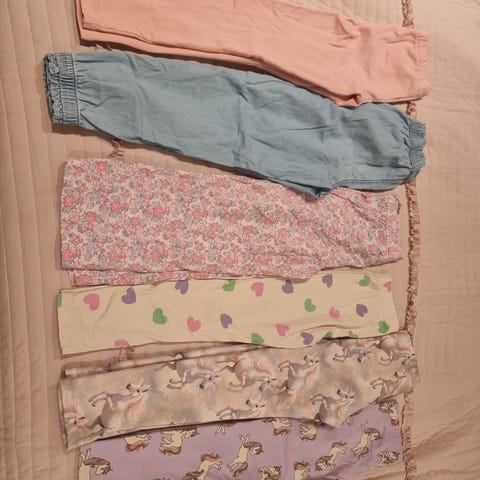 5 stk H&M leggings i størrelse 122 for jente. Laget av bomull med flerfarget design. Passer til hverdagsbruk og har elastisk midje for komfort. Selges ubrukt og tilnærmet ubrukt.