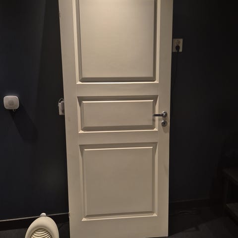 Hengsler, låskasse og dørhåndtak med nøkkellås.