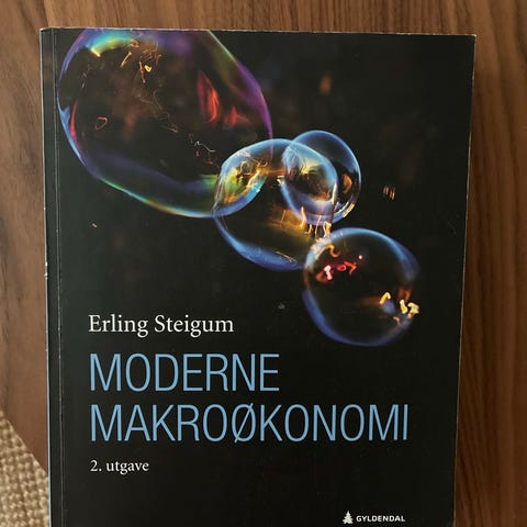 Erling Steigum Moderne makroøkonomi lærebok, 2. utgave. Boken dekker emner innen makroøkonomi med fokus på økonomi og administrasjon.