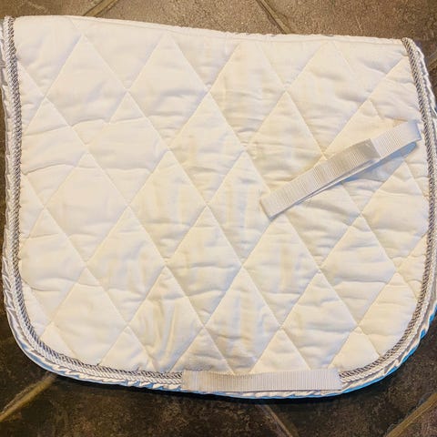 Stigbøyler med lysblå såle og stigbøyle-beskytter, selges samlet 150kr.