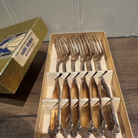 Vintage dessertskjeer i sølvplett – Anne Marie – original eske