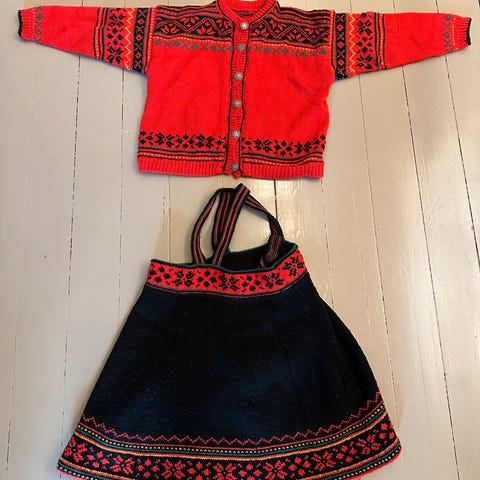 Hjemmestrikket ullgenser / ullkofte str 2-4 år
