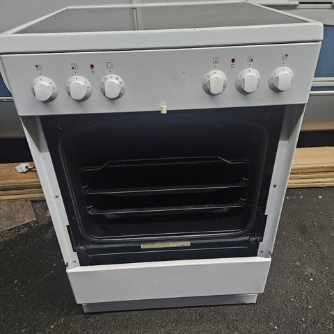 Gorenje keramisk komfyr med keramisk koketopp. Komfyren har flere knotter for regulering av varme og ovn. Ovnsrommet er utstyrt med vifte for jevn varmefordeling. Komfyren er hvit og har en praktisk oppbevaringsskuff under ovnen.