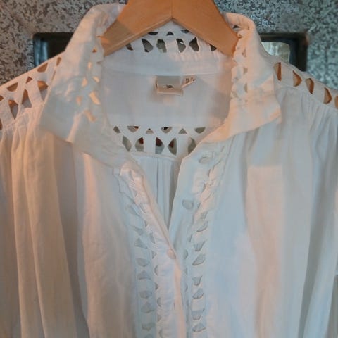 Hvit bluse med blonder fra YAS. Pent brukt.