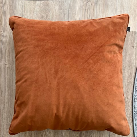 Lysgrå farge. Puten har et mykt og fløyelsaktig materiale, kvadratisk form og passer til generell bruk som dekorasjon eller komfort i hjemmet.
