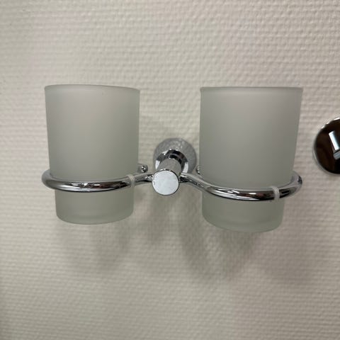 Stumtjener i krom med rund base. Designet for oppheng av klær og tilbehør. Passer til bruk i hjem eller kontor for organisering av yttertøy og hatter.