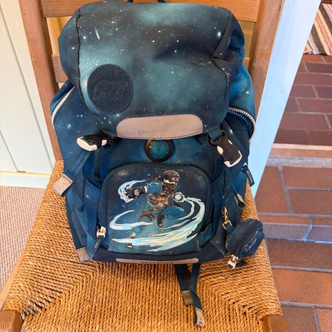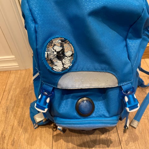 Beckmann, brukt i 2 år. Med enhjörning på. Masse fine lommer og egen nökkellomme