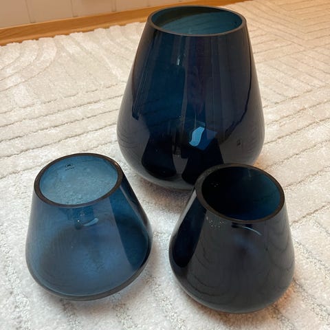 Mål: Vase ca. 22 cm høy. Skåler ca. 12 cm høye.