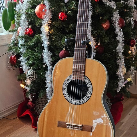 Akustiske gitarer i hvit farge. Gitaren har seks strenger og klassisk design. Egnet for nybegynnere og viderekomne som ønsker en akustisk gitar.