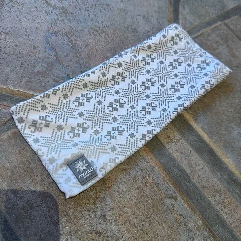 Morild Norway pannebånd i onesize. Brukt to ganger, så fremstår som nytt. Fargen er offwhite med grå tråder. Morild bruker reflekstråder i sine produkter, så de grå trådene fungerer som refleks i mørket. Fin, praktisk og varm.