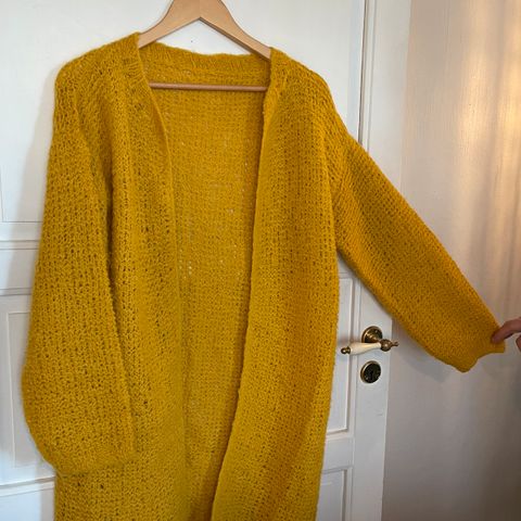 Hjemmestrikket mønstrete jakke selges for kr. 300,-. Er strikket i bomullsgarn. Har laget mønsteret selv, men er inspirert av jakke fra Odd Molly.