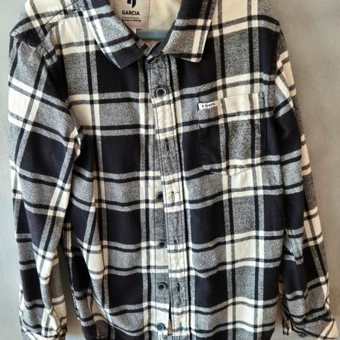 Jean Paul Skjorte barn i størrelse 128, smårutet hvit og blå, laget av lin. Passer for gutt ca 8 år