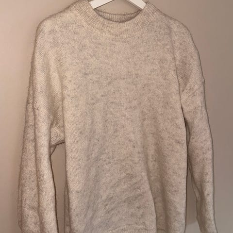 Lindex genser i størrelse XS for dame. Genseren er beige og laget av mohairull, som gir varme og komfort.