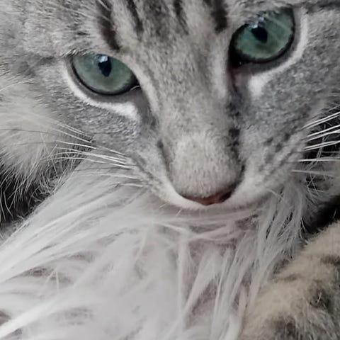 Fin og snill hunnkatt trenger nytt hjem grunnet allergi. Hun er 6,5 år, kastrert og chippet. Veldig glad i mennesker, mye kos og prating. Hun er litt stor i størrelse men leker og er med overalt.