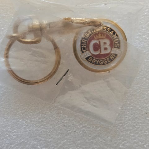 Tuborg Øl skilt med motiv av en eldre mann ved en bro. Metall og noen hull av gammel oppheng. Litt ujevn men bare gammel sjarm