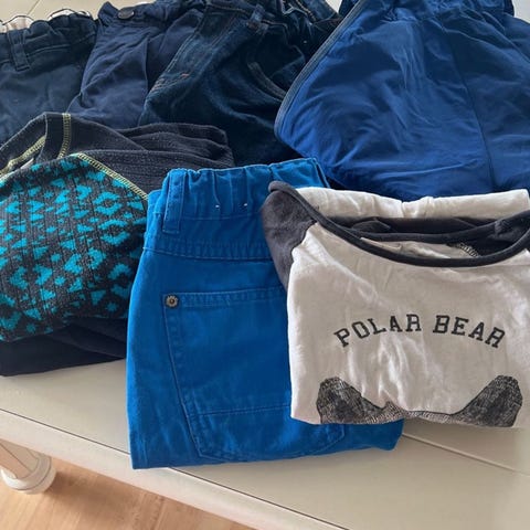 Inneholder to varme gensere, to tynne gensere, to shortser, en turbukse fra Stormberg, Pikachu kosedress, to ullstillongser og to ulltrøyer