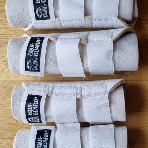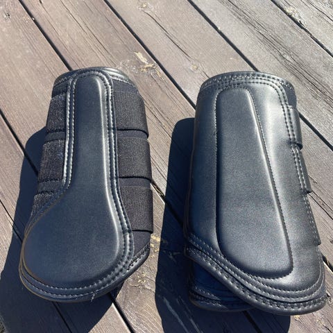 Senebeskyttere i merket Hunter. Lite brukt og ekte skinn. Det står størrelse 3 på de. Regner med dette tilsvarer str. full, da de ble kjøpt til en hest som brukte str. full til vanlig.