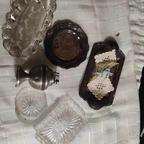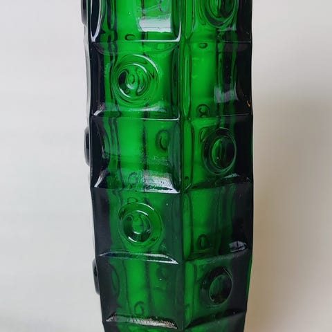 Dette er en stettskål i smaragdgrønt pressglass, muligens fra det polske glassverket Ząbkowice