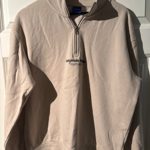 Jack & Jones Originals Elite Club genser i størrelse M. Genseren er grønn og laget av bomull. Den har rund hals med ribbekant i kontrastfarger og er designet for menn.