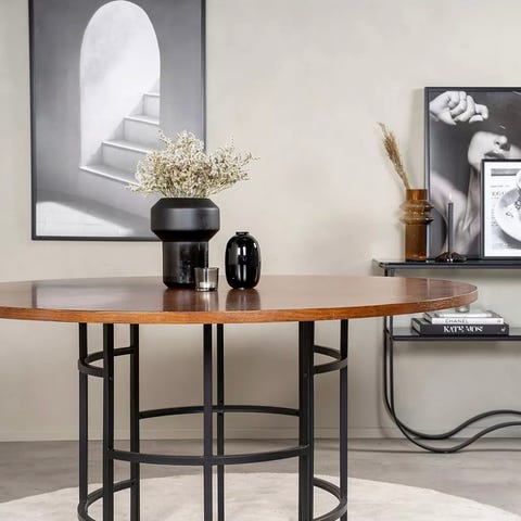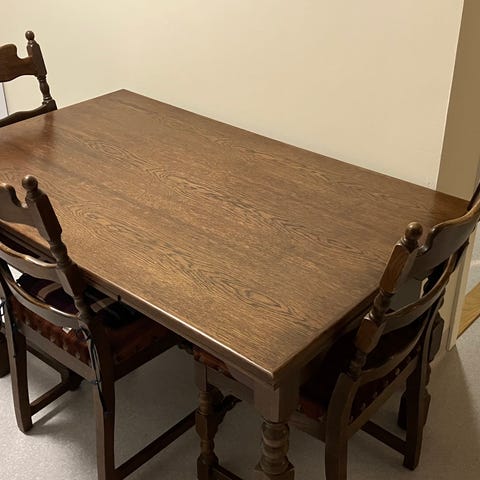 Bordet er malt sort. Ileggsplate følger med. Kan ses en fargeforskjell mellom bord og illeggsplaten. Vi har brukt duk under selskaper. Målene i annonsen er på bordet. Bordets lengde med illegsplaten er 225 cm, uten 180 cm.