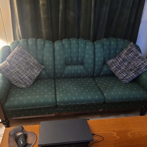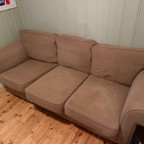 Godt brukt Karlstad 3-seter fra IKEA gis bort om noen tenker den kanskje kan leve litt lenger? Lys beige stoff. Nyvasket. Noen flekker, skjolder og slitasje-merker. Forøvrig fast og hel. Må hentes.