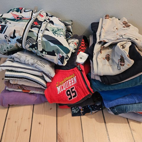 Selger en klespakke i str 104, brukt av ett barn.