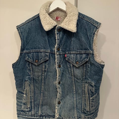 Lee Denimvest for herre i størrelse L. Vesten er laget av denim og har en blå farge.