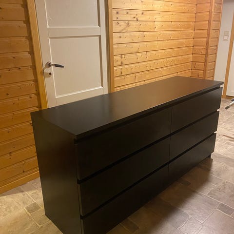 IKEA Malm kommode i hvit farge med 6 skuffer i ulik størrelse. Den er som ny, ingen synlige bruksmerker. Åpen for bud, men den må hentes snarest mulig.