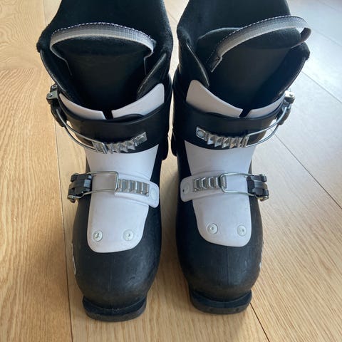 Slalomski og slalomsko selges samlet. Nordica X-Drive 70 alpinstøvler for barn. Utvendig str 250 mm. Innvending størrelse 215 (34). Støvlene har fire spenner for god tilpasning og støtte.