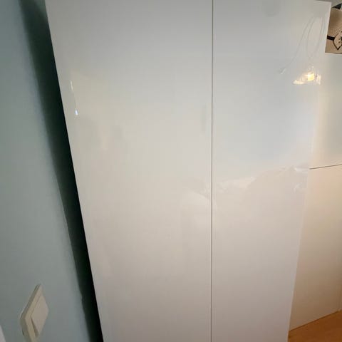 Pent brukt garderobeskap. Mangler en bakplate, så skapet på festes i veggen for å stå stødt.