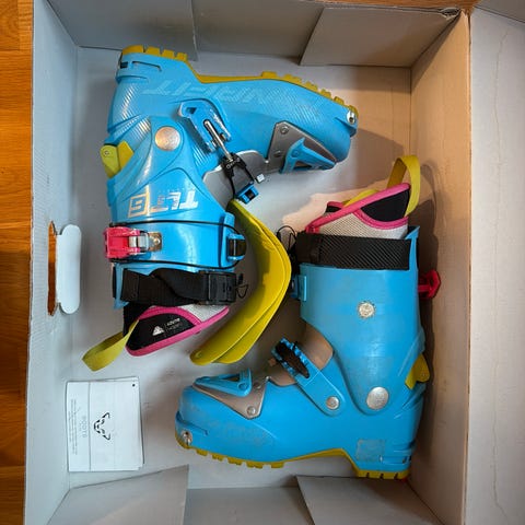Fra VPG: Samme støvel som TLT X, men produsert i PU plast. Det gjør den billigere og litt tyngre (10%) enn sin original.Støvlene er veldig lette og med nærmest friksjonsløs gange er dette skoen for deg som ønsker lettes mulig utstyr opp, men fortsatt øsnker en fin nedtur. Rotasjonspunktet er senket, hvilket øker stivheten sideveis og gir bedre kontroll i svingene. Meget enkelt betjent strammehjul over vristen som virkelig setter hælen fast i skoene og med fin mikrojustering, enkel låsespenne bak og leveres med hele to Powerstraps.Lestbredden på denne skoen er 101mm.