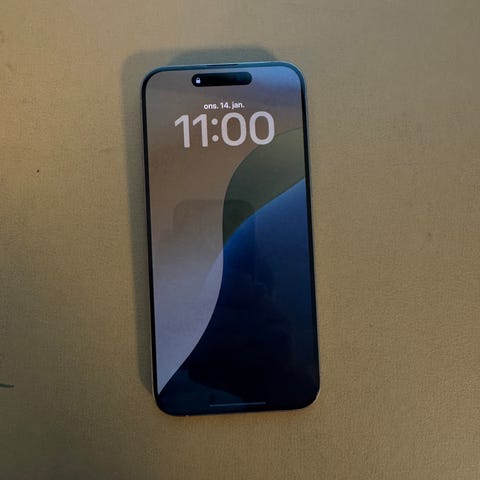 Apple iPhone 16 Pro mobiltelefon med 128 GB lagringskapasitet og 100% batteritilstand.
