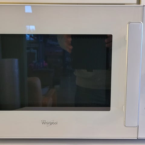 Whirlpool mikrobølgeovn i hvit farge. En kompakt mikrobølgeovn med kontrollpanel for enkel justering av tid og effekt. Egnet for oppvarming og tining av matvarer.