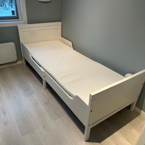 Hentet selv denne på Finn - har ikke satt den opp eller brukt den. Det følger med hjemmelagd madrass fra forrige eier. Lekegrinden er demontert.