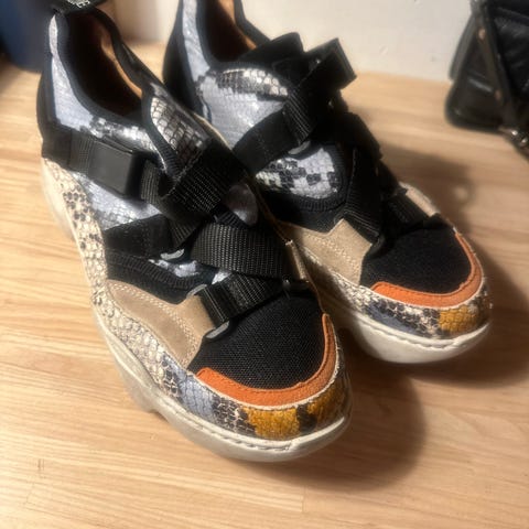 Adidas sneakers joggesko i størrelse 39. Skoene har hvit base med røde detaljer og er laget med materialer som gir komfort og støtte ved bruk.